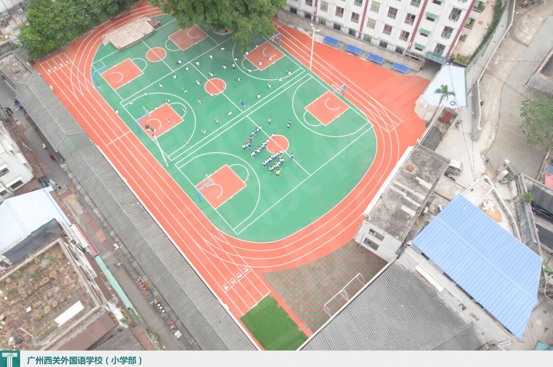 In Guangzhou Xiguan foreign language school stadium, tongxin'an speed series prefabricated rubber stadium sports surface is selected. The series of court roll adopts high-density elastic wear-resistant layer, which is durable; its litchi pattern can meet the needs of different sports; the product has excellent toughness and will not be cracked.