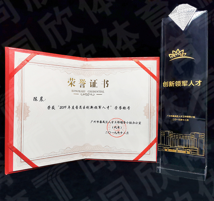 在2019年番禺区“1+4“产业人才项目的颁奖仪式上,同欣体育董事长蔡陈敏教授,荣获“2019年度番禺区禺山产业高端人才”荣誉称号。同欣体育总经理陈晨博士,荣获“2019年度番禺区创新领军人才”荣誉称号。值得一提的是,此次陈晨博士所入选的“番禺区创新领军人才”在全区仅10人获得。同欣体育凭借高水准的软硬实力,在激流勇荡的竞选中,成功获得属于自己的荣耀见证!实至名归!